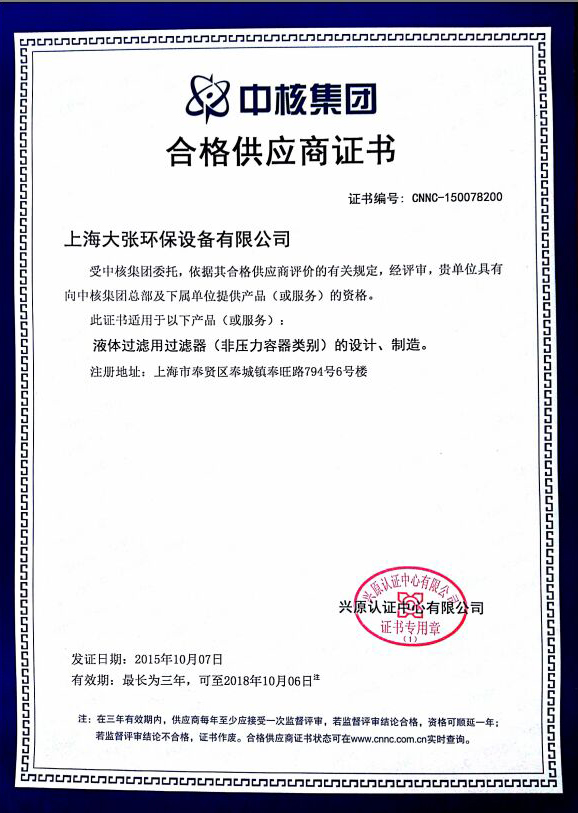 上海大張榮獲中核集團(tuán)長期供應(yīng)商資格