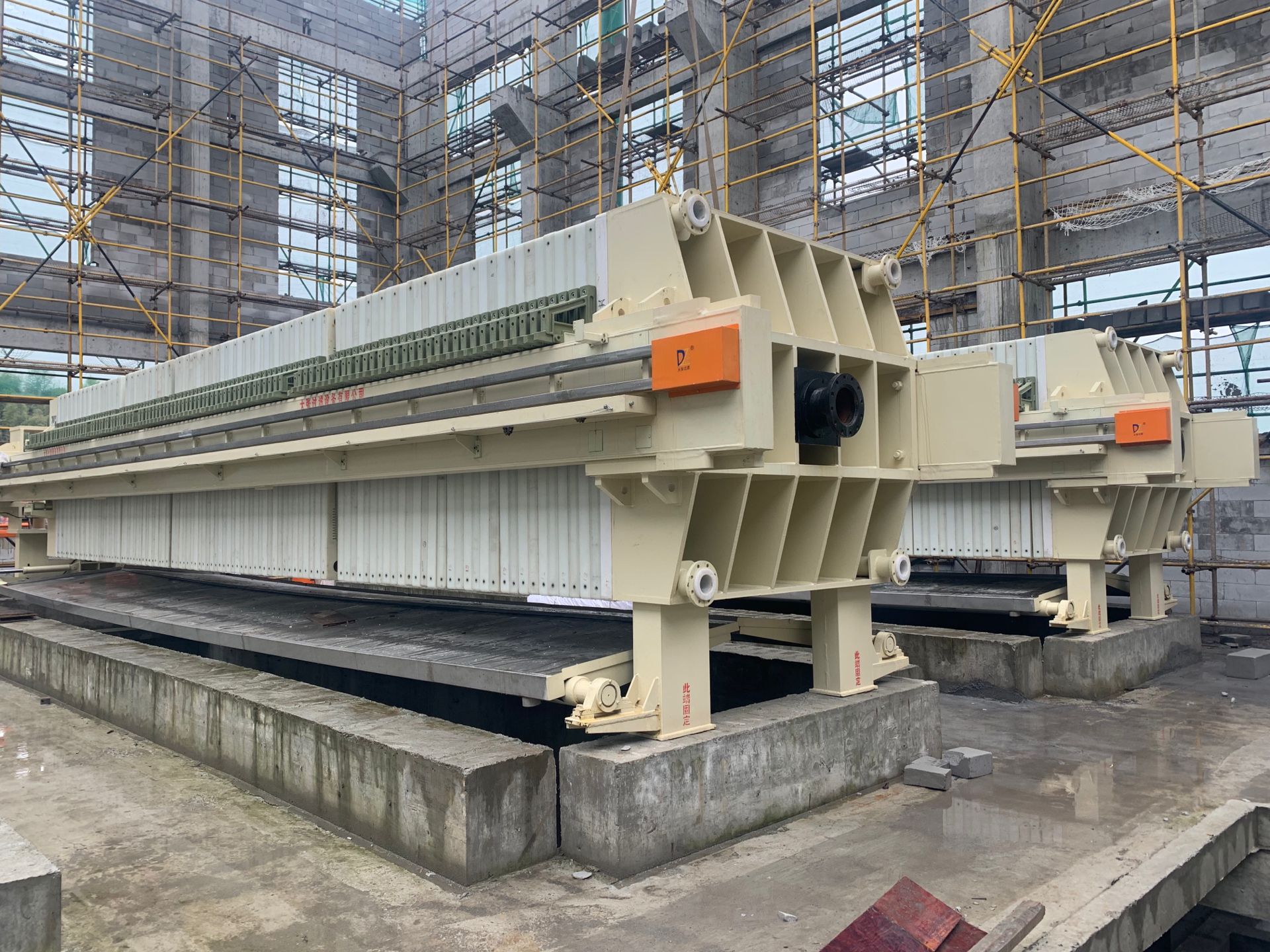 在核心部件設計上,高壓隔膜壓濾機采用多層復合濾布,具備高過濾精度與強耐磨性;節(jié)能型液壓泵站搭配變頻電機,能耗相比傳統(tǒng)設備降低 30%;濾板表面特殊紋理設計,有效防止濾餅粘連,濾餅脫落率達 99%。此外,設備支持模塊化擴展,可根據處理量需求靈活增加濾室數(shù)量,過濾面積覆蓋50-300㎡,單機處理量最高可達20m3/h。