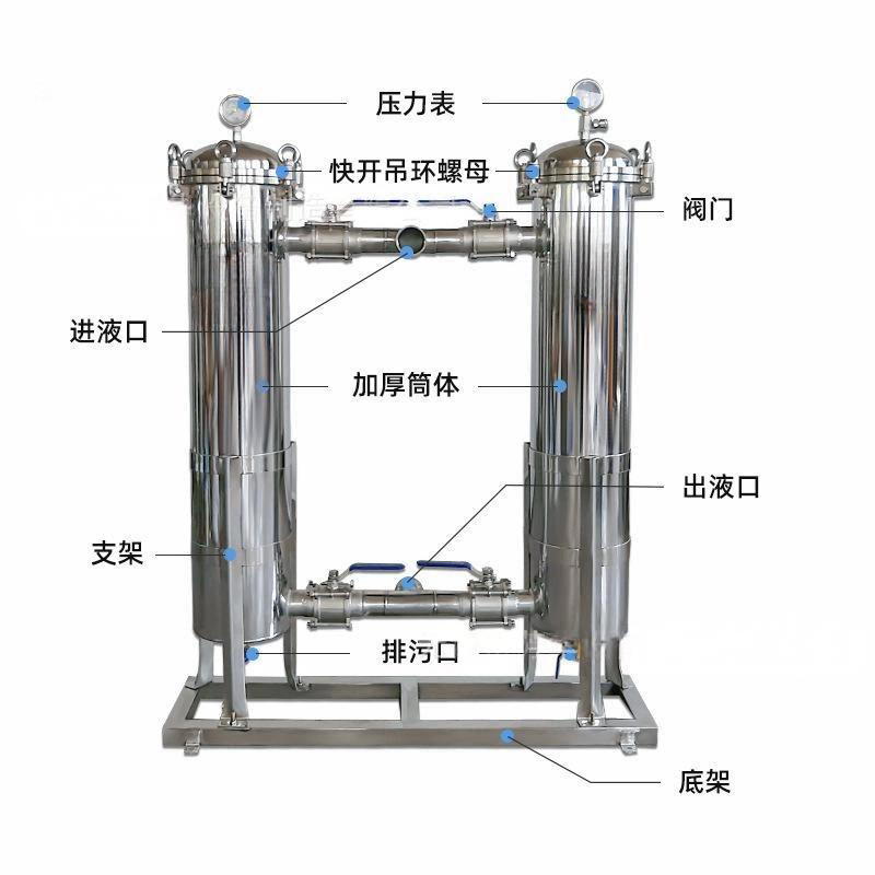 ? ? ? ? ?大張環(huán)保的不銹鋼袋式過濾器核心功能在于高效截留雜質(zhì),實現(xiàn)液體的精準(zhǔn)凈化。它采用優(yōu)質(zhì)濾袋作為過濾介質(zhì),當(dāng)待過濾液體進入過濾器后,會在壓力作用下通過濾袋,液體中的懸浮顆粒、膠體、雜質(zhì)等會被濾袋截留,從而得到潔凈的濾液。?