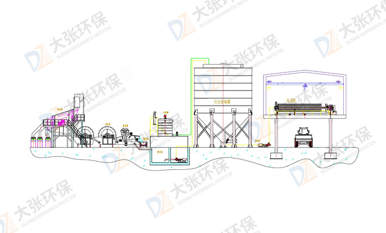 洗砂石骨料線(xiàn)上振動(dòng)篩上加水(根據(jù)現(xiàn)場(chǎng)泥量添加),每小時(shí)產(chǎn)生洗砂污水總量,污水和少量細(xì)砂骨料經(jīng)管道進(jìn)入螺旋洗砂機(jī),細(xì)砂骨料經(jīng)過(guò)螺旋洗砂機(jī)頂部直接排放到輸送帶上進(jìn)行干堆,洗砂機(jī)底部污水直接流入緩沖罐,用渣漿泵通過(guò)旋流器,底部進(jìn)行細(xì)砂和污泥分離,細(xì)砂直接排放到細(xì)砂回收機(jī)振動(dòng)篩上進(jìn)行干堆,污水經(jīng)過(guò)旋流器頂部通過(guò)提升泵直接進(jìn)入預(yù)處理高效濃縮罐,通過(guò)加少量PAM聚丙烯酰胺藥劑/PAC組濾劑進(jìn)行污泥沉降。清水直接排放到清水池,清水回收洗砂循環(huán)使用,預(yù)處理濃縮罐沉降污泥池底部通過(guò)渣漿泵把加藥沉降含40%-50%污泥,用渣漿泵進(jìn)入污泥高壓壓濾機(jī)進(jìn)行脫水;使污泥濾餅含水率達(dá)20-22%左右干污泥干堆/通過(guò)皮帶輸送機(jī)輸?shù)街付ǖ攸c(diǎn)。出水達(dá)到循環(huán)使用。無(wú)噪聲無(wú)異味,對(duì)周?chē)h(huán)境無(wú)影響。